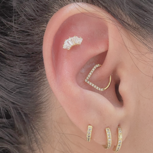 Piercing Titanio Dorado Luna Mini Con Circonias