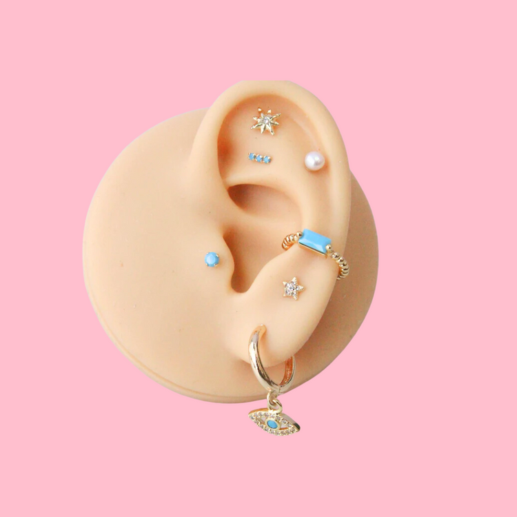 Arracada Estrella Turquesa Acero Dorado 8mm