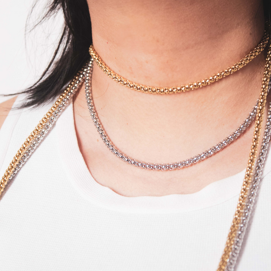 ¿Amante de lo clásico? Nuestras perlas añaden un toque de elegancia a tu cuello. ¿Buscas algo moderno y audaz? Nuestros chokers son la elección perfecta.