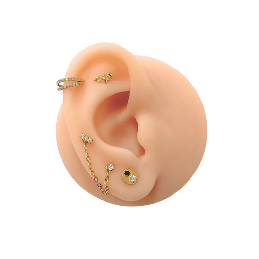 Arracada Daith Recto Con Circonias Acero Dorado 8mm