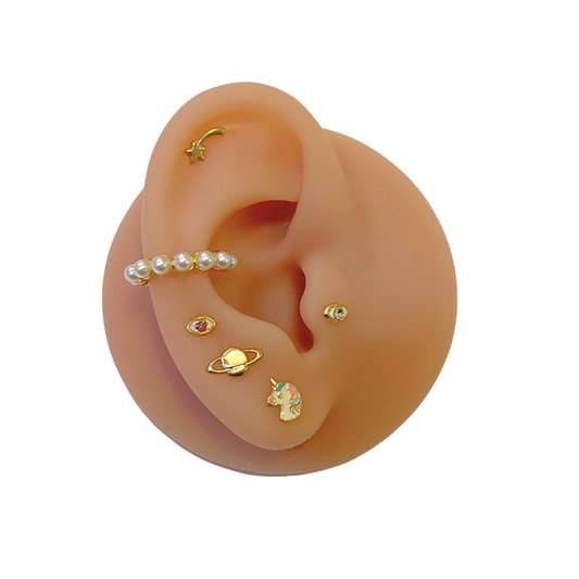 El oro es ideal para cambios de pieza, es decir, cuando tu perfo esta completamente sana, ya que no se corroe cuando se expone al oxígeno. Tenemos más de 100 modelos para que elijas tu favorito para tu cambio o diseño de oreja.