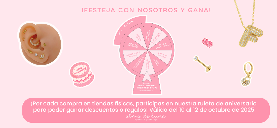 En Alma de Luna Joyería & Piercings, utilizamos el método de máquina para realizar perforaciones en niñ@s y bebés, garantizando rapidez y precisión. Cada arete viene en un cartucho sellado, esterilizado y desechable de grado médico, aprobado por la FDA y COFEPRIS. El costo por perforación y arete es de $400 MXN con arete de acero quirúrgico y $800 MXN con arete de oro 14K (el precio por cada hoyito). Para la seguridad de los bebés, no realizamos perforaciones con aguja debido a su procedimiento y posibles movimientos.