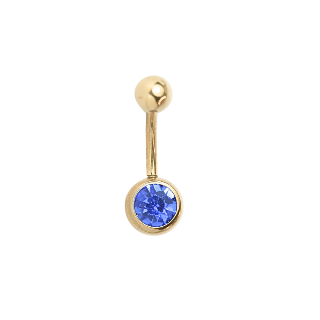 Piercing Titanio Dorado Ombligo Bolita y Bisel Azul
